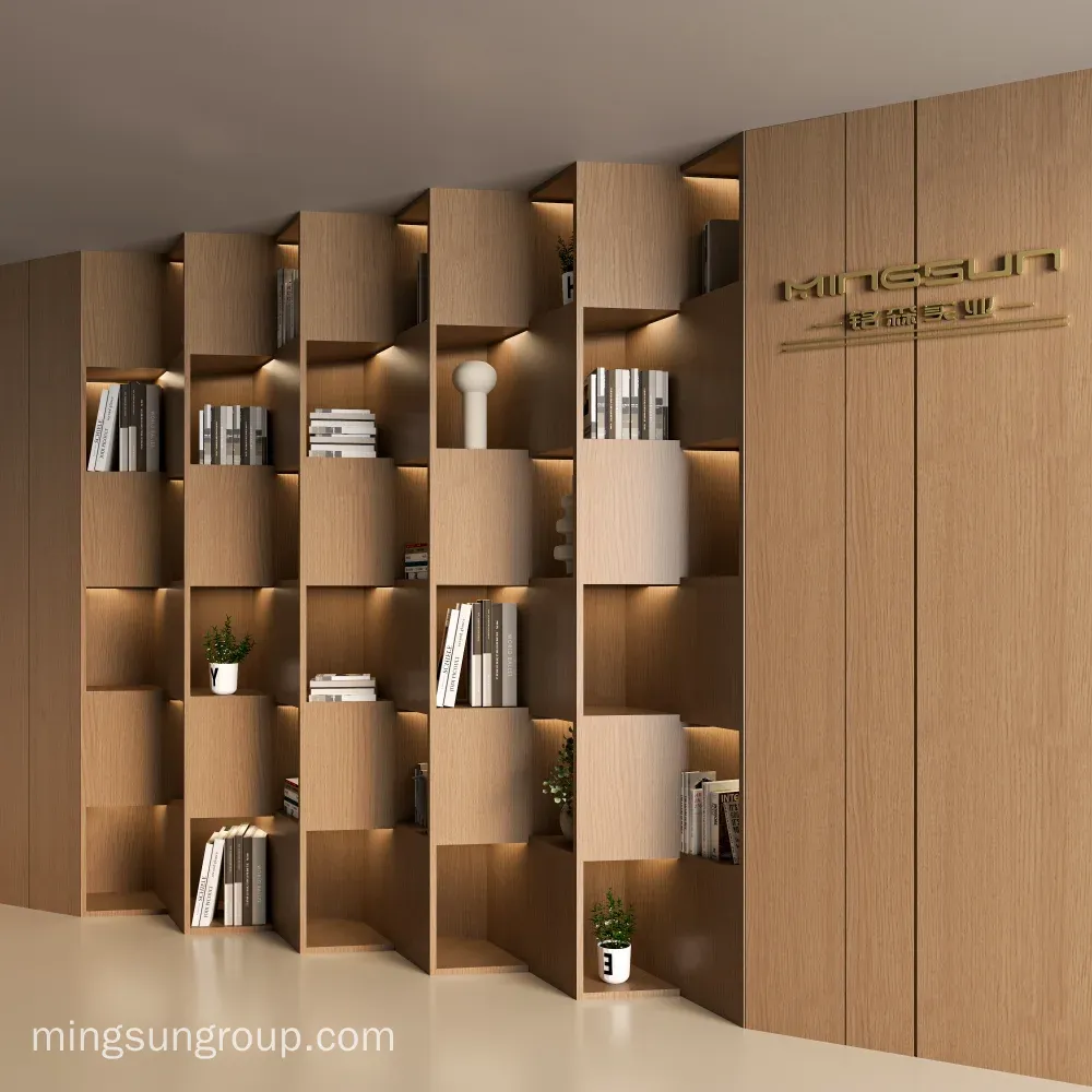 MINGSUN offers one-stop custom solutions for the hospitality industry. With over 200 skilled workers and an in-house design team, we collaborate closely with clients to deliver tailored furniture that fits both design intent and operational needs. Our quality control process ensures each bookshelf wall is durable, safe, and ready for frequent hotel use.