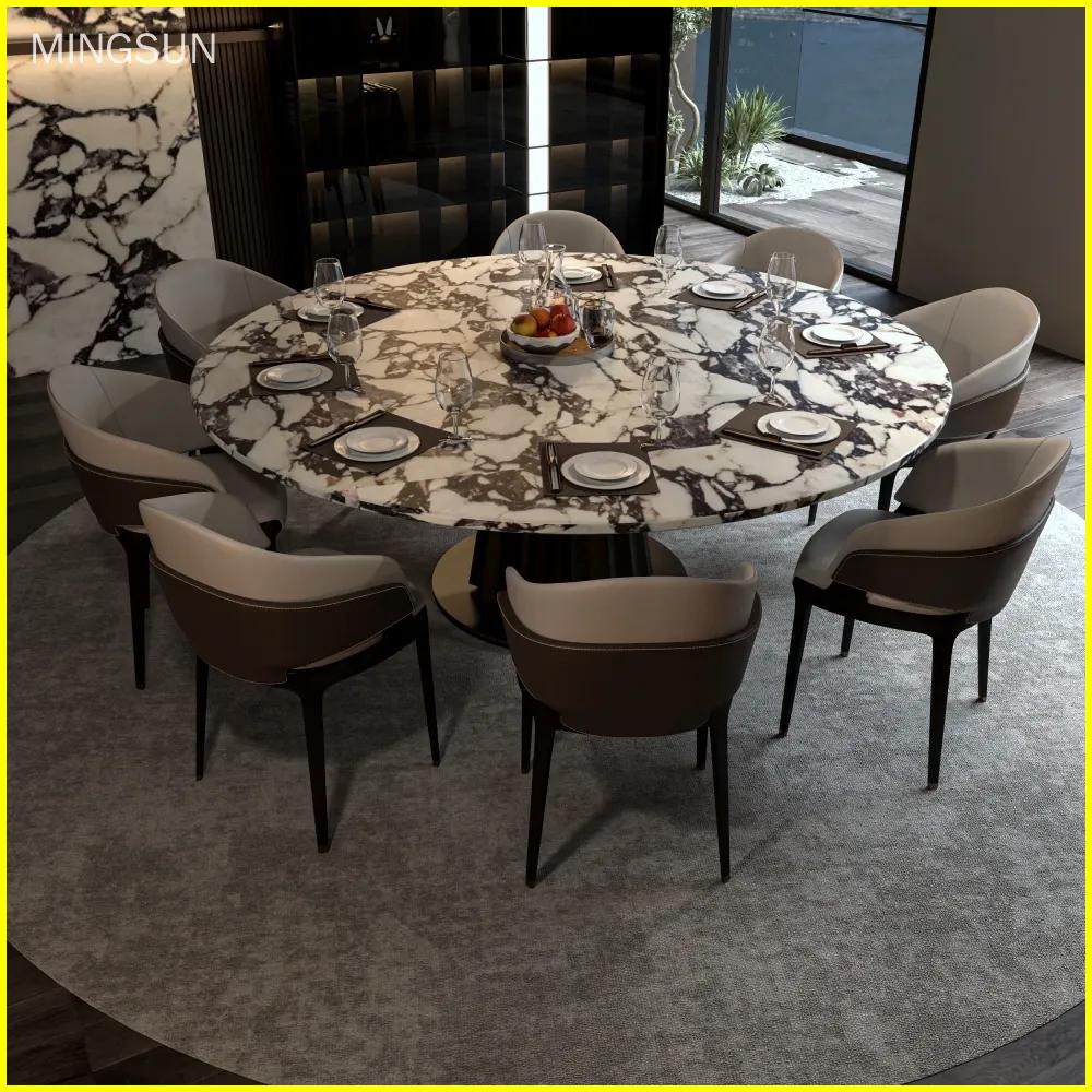 The MINGSUN Large Marble Dining Table is a High Quality choice for hotels, restaurants, and upscale dining areas. Available in 6-seater and 8-seater sizes, this table combines a luxurious marble top with a robust base to deliver lasting beauty and commercial durability.