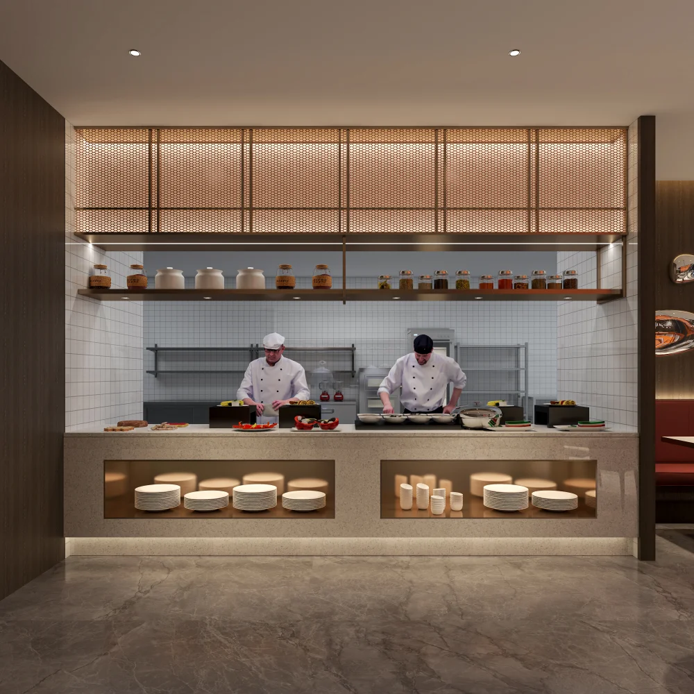 - Modular layouts: island, linear, or corner buffet stations to fit any floor plan.