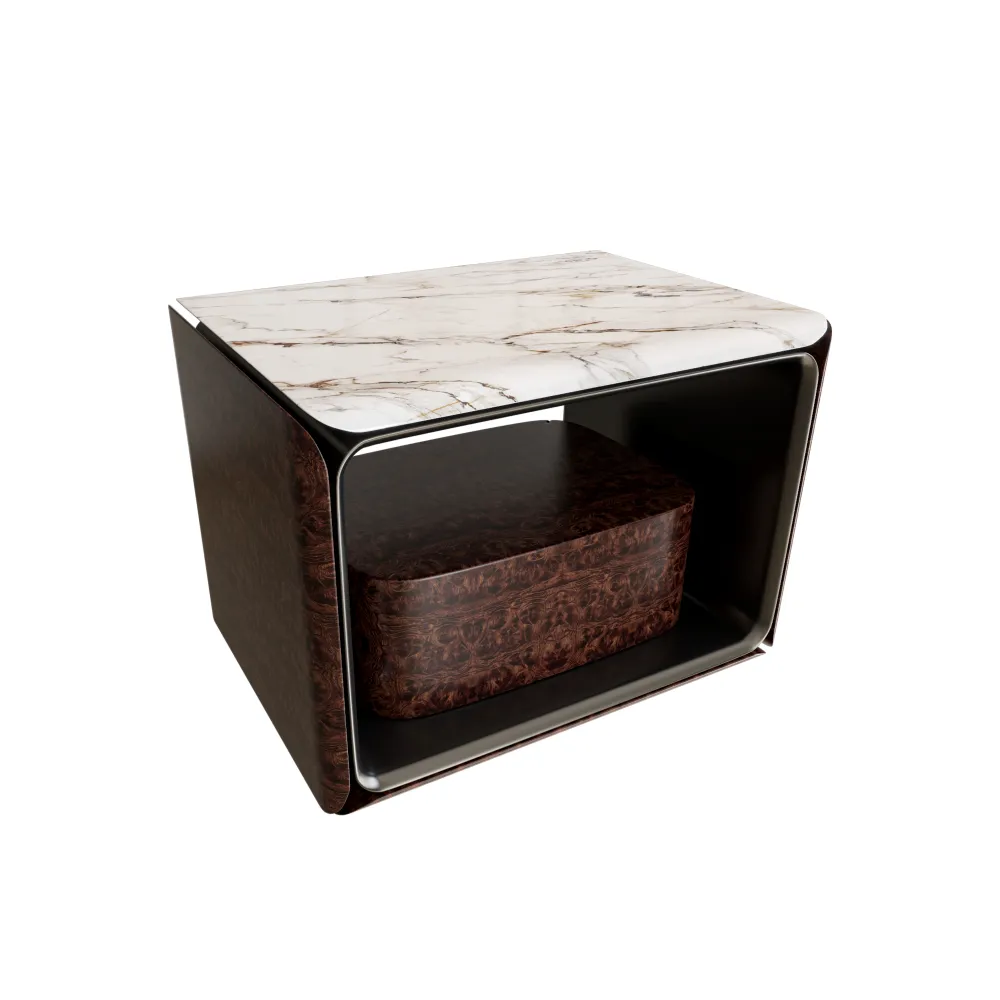 The cube-inspired silhouette provides a minimalist aesthetic that works well beside beds of any size. Smooth edges and subtle detailing create a refined appearance without overwhelming the room.