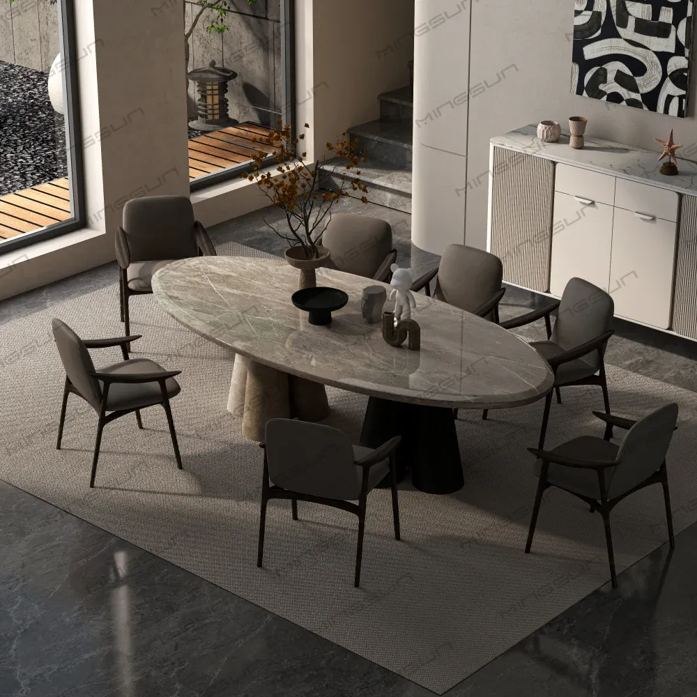 MINGSUN supplies marble dining table set solutions ideal for hotel restaurants, lounge areas, banquet setups, and VIP dining rooms. We coordinate packing, logistics, and global delivery, ensuring on-time arrival and professional unpacking guidance. Installation support and after-sales service are available to simplify project handover.