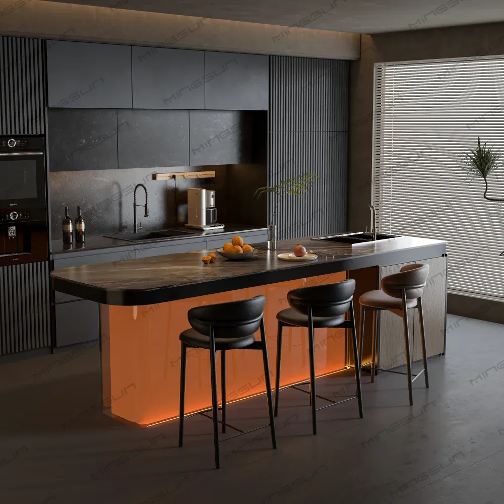 Luxury Island Bar Counter with Amber Acrylic Base & Integrated Sink