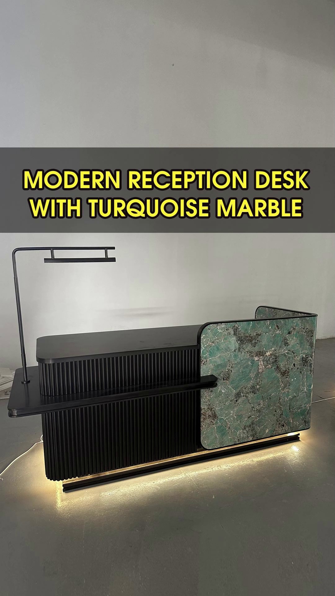 Mingsun Custom Reception Desk Featuring Turquoise Marble and Integrated Lighting