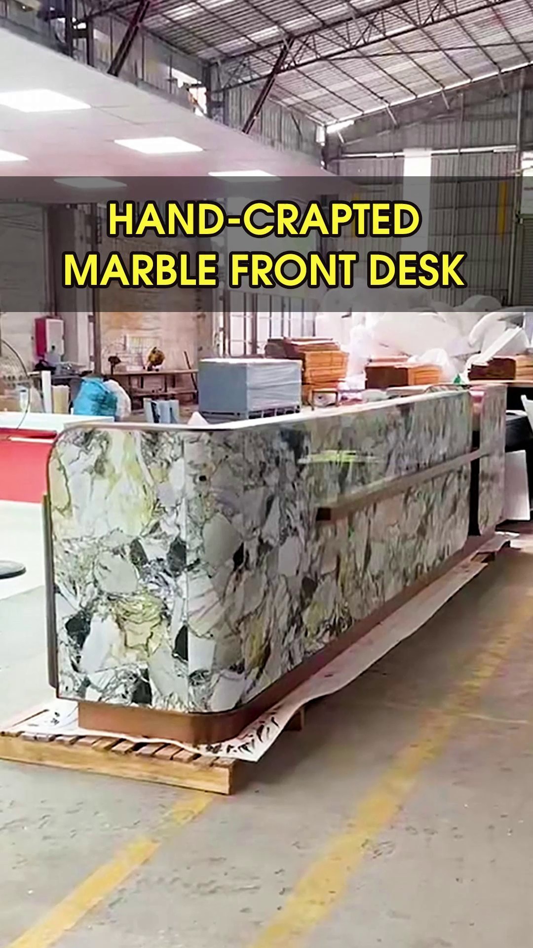 Watch a behind-the-scenes video where we take you through the meticulous process of creating this luxurious reception desk. From the selection of premium materials to the intricate metal detailing, every step reflects our commitment to superior craftsmanship.